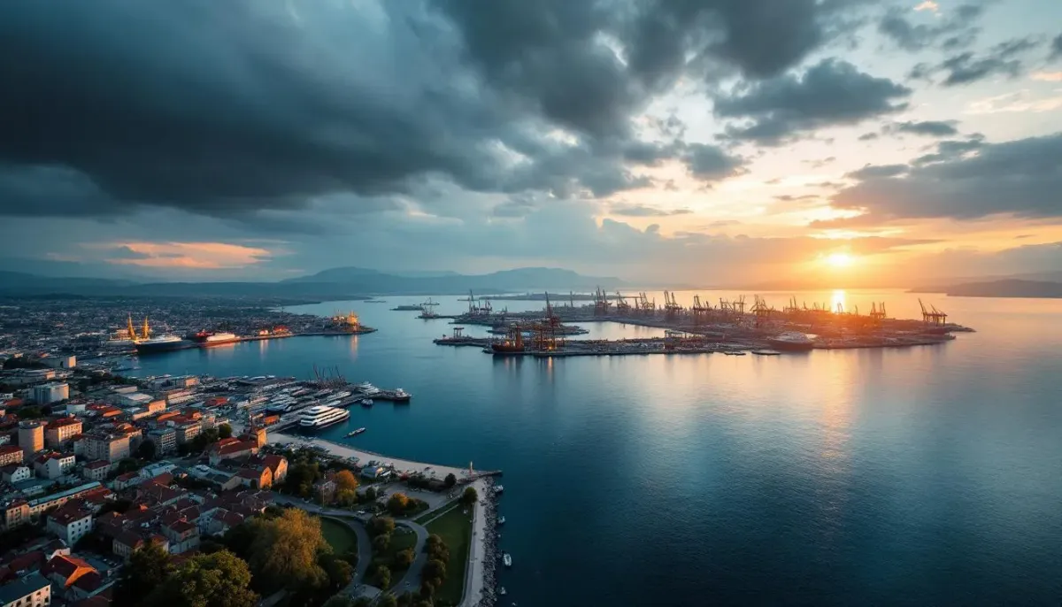 Croatia's largest port with dramatic industrial architecture, warehouses, and cranes. Gritty urban aesthetic for thrillers, documentaries, and music videos.
